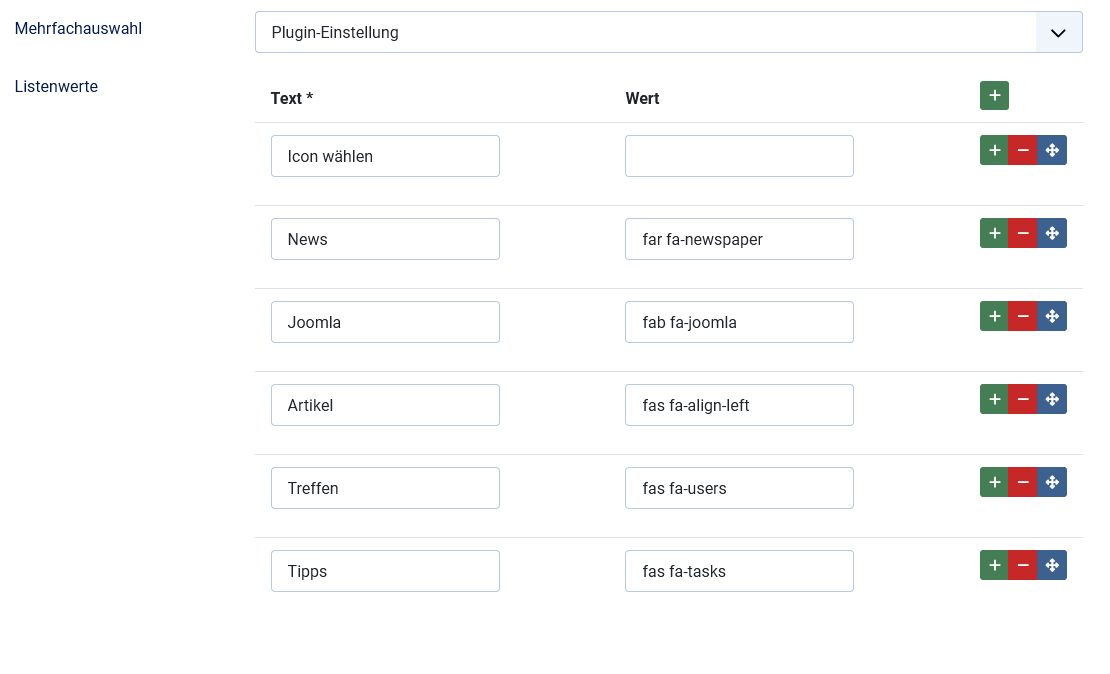 Um es den Autoren leicht zu machen, werden wir ein Benutzerdefiniert Feld verwenden, um das Symbol hinzuzufügen. Und weil ja Joomla Fontawesome mit an Bord hat, werden wir diese Icons verwenden.