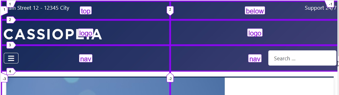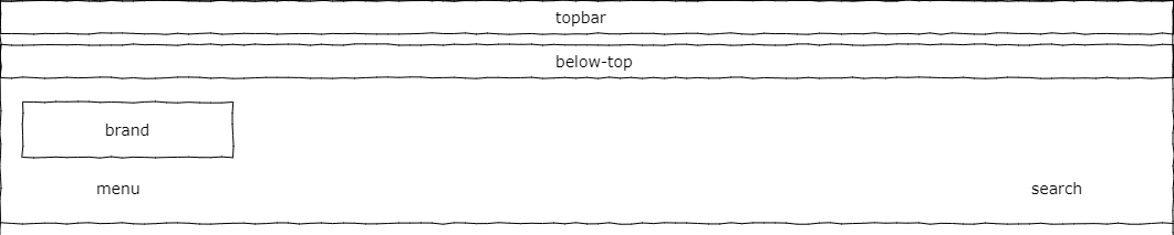 Jetzt brauchen wir eine neue Definition der Rasterbereiche. Wenn wir topbar und below-top nicht verwenden, werden wir unser Logo, das Menü und die Suche wie folgt platzieren: