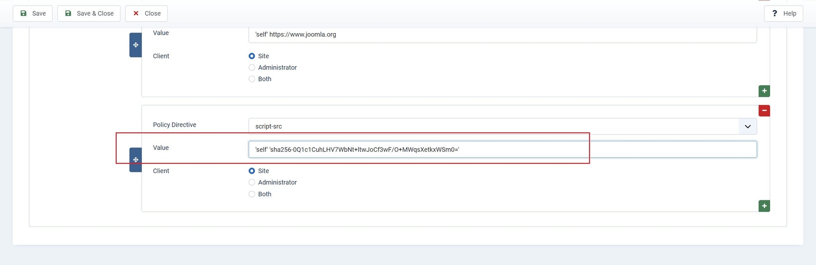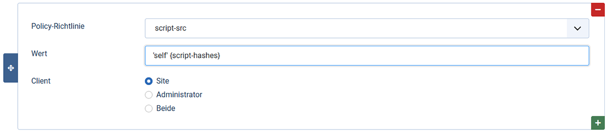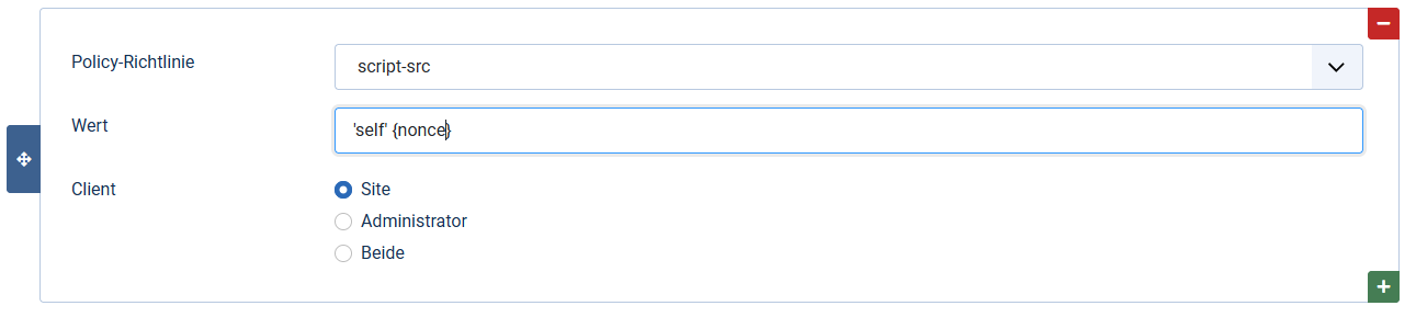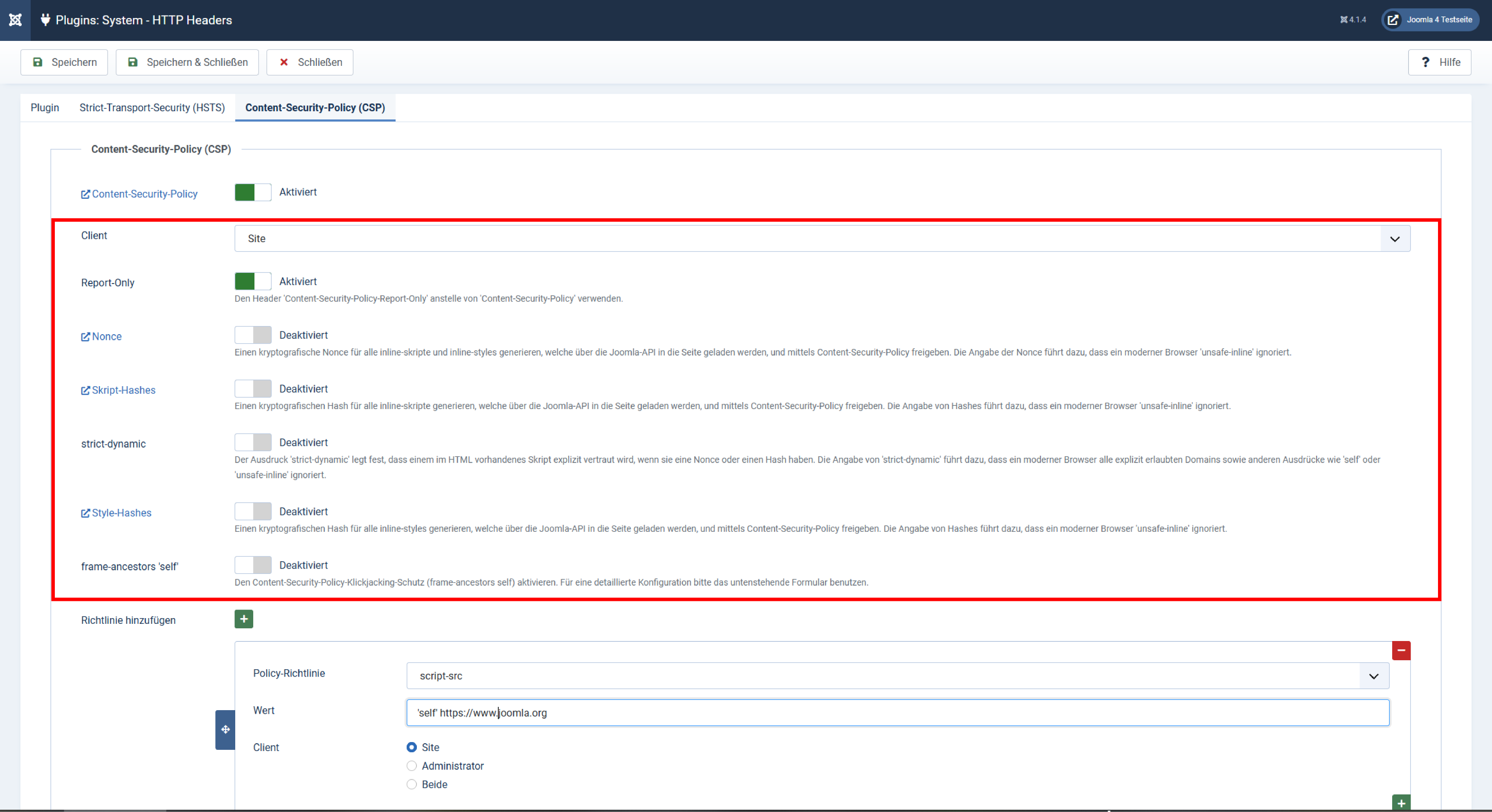 Das HTTP-Header-Plugin von Joomla gibt dir auch die Möglichkeit, einige globale Parameter im Reiter Content Security Policy zu setzen.
