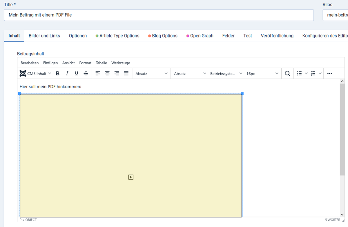 Dies ist eine Übersetzung des Artikels «Explore the Core: Easily embed PDFs into your Joomla content» von Anja de Crom aus dem Joomla! Community Magazine 10/22 (Link zum Original)