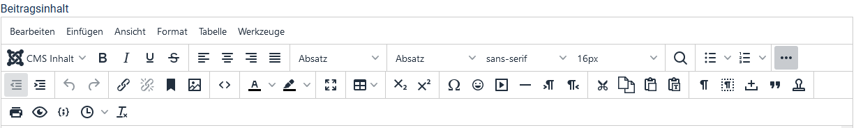 Standard-Werkzeugliste des TinyMCE für den Superuser