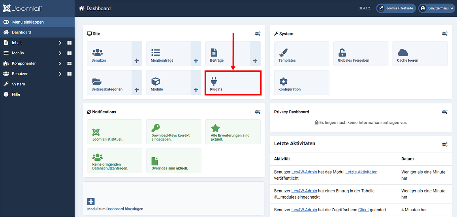 Du kannst auch zu System > Verwalten > Plugins gehen, aber das Schnellsymbol ist schneller.