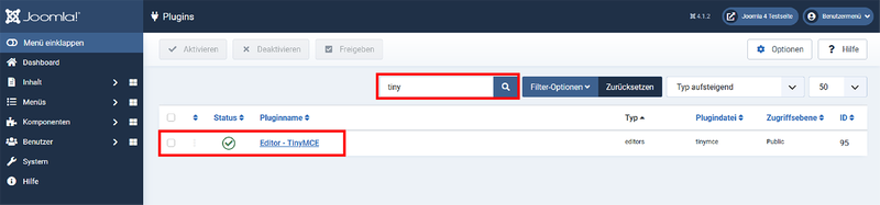 Gib in der Suchleiste "TinyMCE" (oder einfach "tiny") ein und wähle "Editor - TinyMCE".