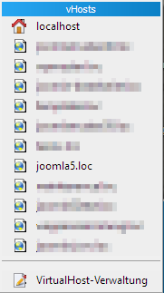 Jetzt starten wir den Wampserver neu: Rechtsklick -> Restart from zero. Wenn der Server läuft, sollten wir folgendes unter vHosts sehen: Der vHost Name ist mit einem [HTTPS] verziert.